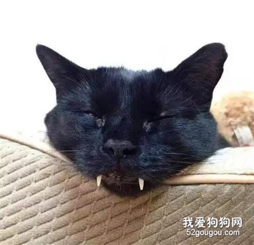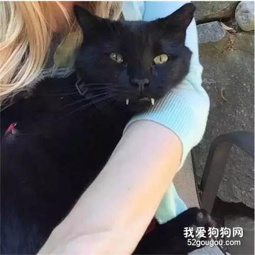它的名字叫小猴,是一只有着吸血僵尸牙齿的黑猫,看起来它就像一个万圣节电影中的人物。