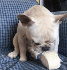 狗子喜提一个小馒头,吃得超开心。