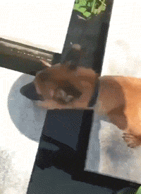 狗子跟主人开心的过水塘,结果走没几步就被台阶给坑了,好尴尬!