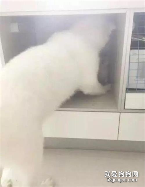 网友家还有只大狗,应该是微笑天使萨摩耶....它很喜欢猫,无论猫躲在哪,它似乎都可以找到她....
