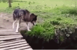 铲屎官带哈爷去放风,没想到途中遇见一座小桥。