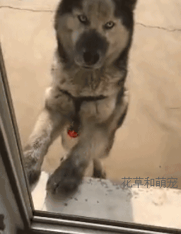见主人半天不理自己,哈士奇还主动站了起来,把爪子搭在窗户上,摇着尾巴给主人卖萌,明明主人就在家里,为什么不开门啊,看哈士奇这一系列的表情,也真是醉醉的……