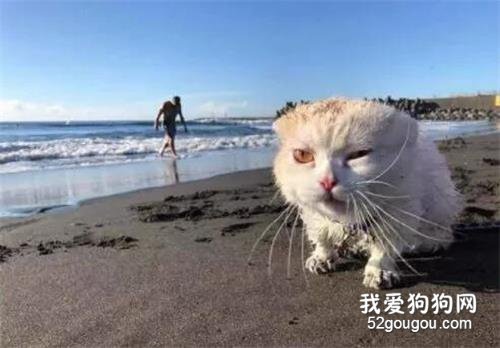 风好大,猫好怕!第一次看见海的猫咪竟然是这个反应!