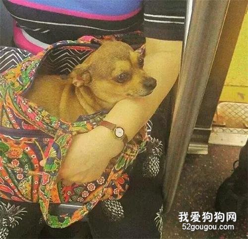 很多人都知道美国纽约地铁虽然让带狗,可却有一项限制:带狗可以,但是必须用东西把它们装起来!