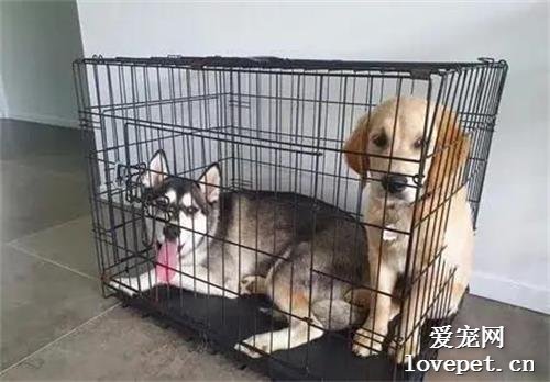小金毛和二哈合不来,在一起总是打架,于是主人把它们关在了一起...